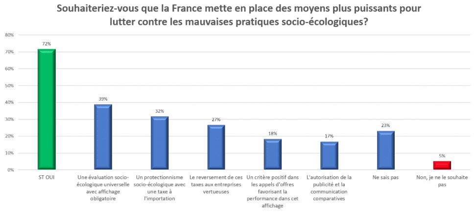 Plus des 2/3 des français souhaiteraient encourager les bonnes pratiques socio-écologiques par un système de bonus – malus sur tous les produits vendus en France.
